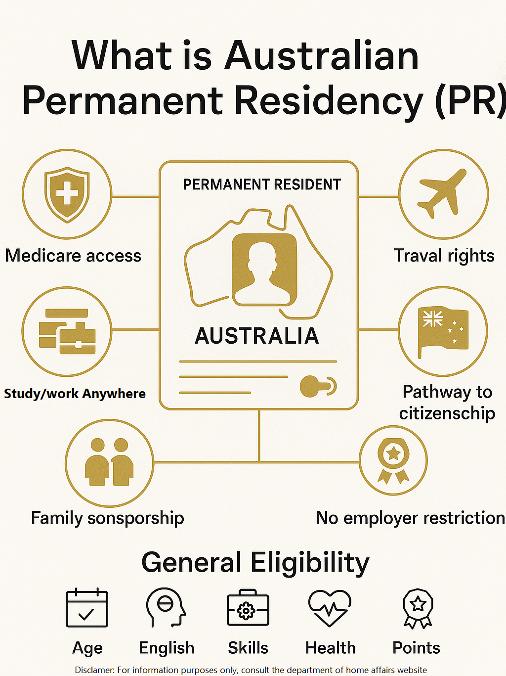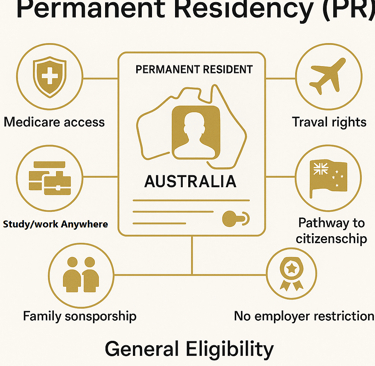 Australia’s Permanent Residency (PR) status allows non-citizens to live, work, and study in Australia indefinitely. PR holders enjoy many rights similar to citizens, including access to healthcare, social security benefits (after waiting periods), and the ability to apply for Australian citizenship after meeting residency criteria.