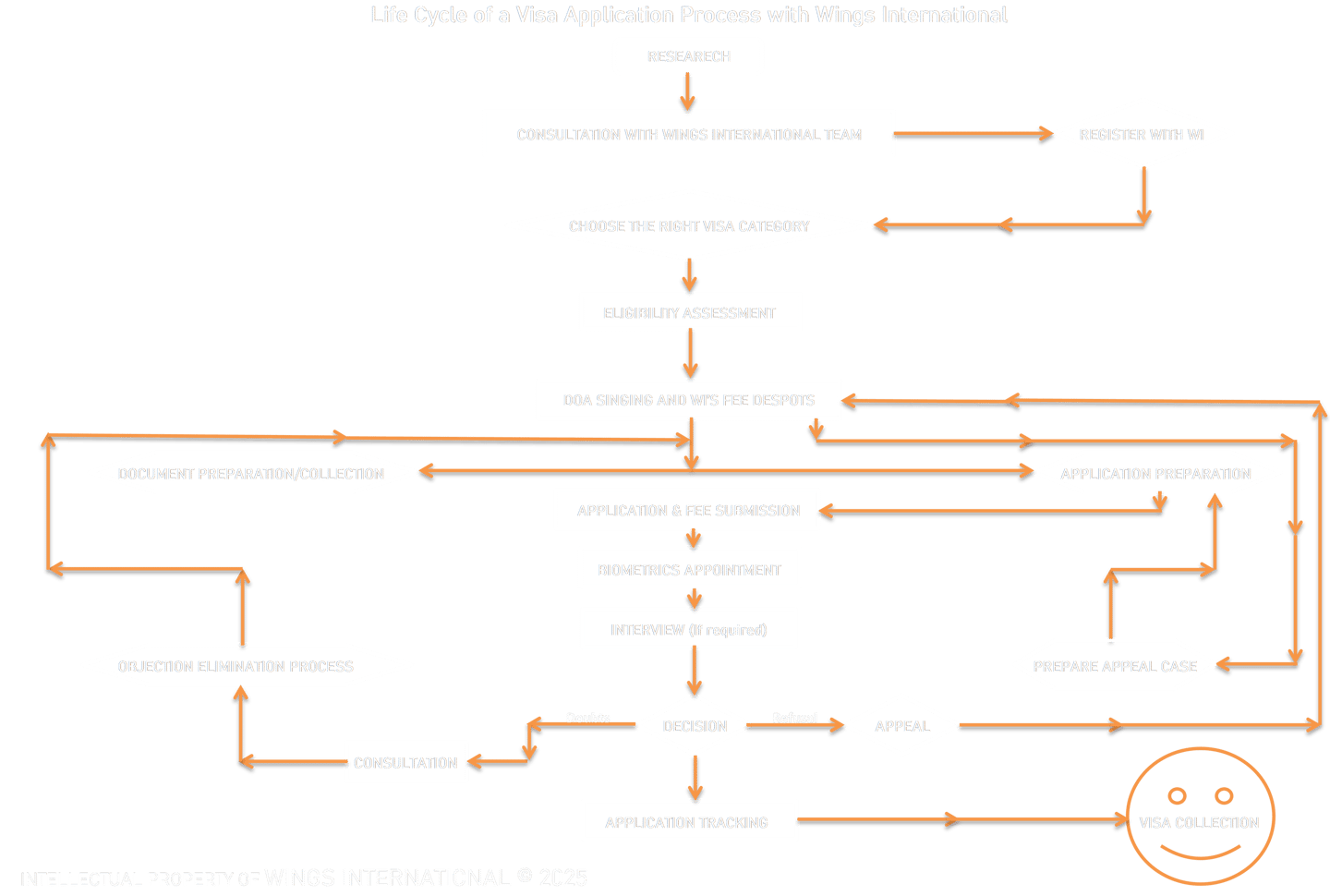 Disclaimer: The content provided on this website is for general informational and educational purposes only and does not constitute personal migration advice. Users are strongly advised not to act solely on the basis of material contained herein. For guidance specific to your circumstances, we recommend consulting directly with a licensed migration professional, who operates in accordance with all applicable codes of conduct and professional standards. By continuing to use this site, you acknowledge and accept that Wings International holds no liability for any actions taken based on website content alone.