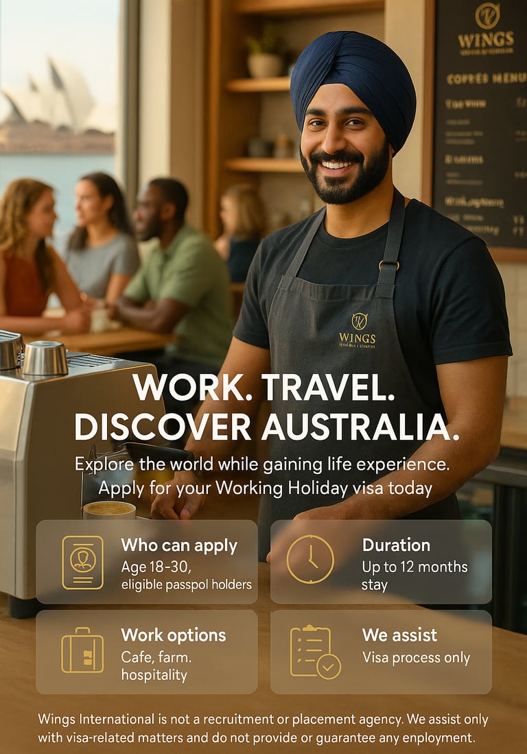Wings International is not a recruitment or placement agency. We assist only with visa-related matters and do not provide or guarantee any employment.